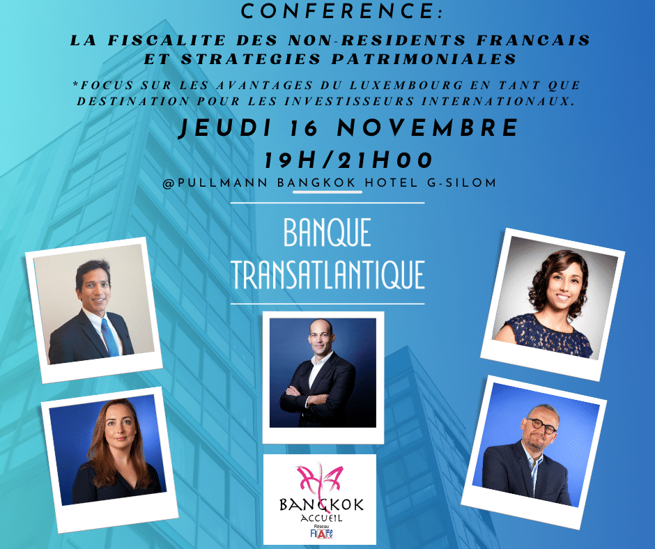 Conférence en présence des Directrices et Directeurs de la Banque Transatlantique qui auront le plaisir de vous détailler la fiscalité des non-residents.