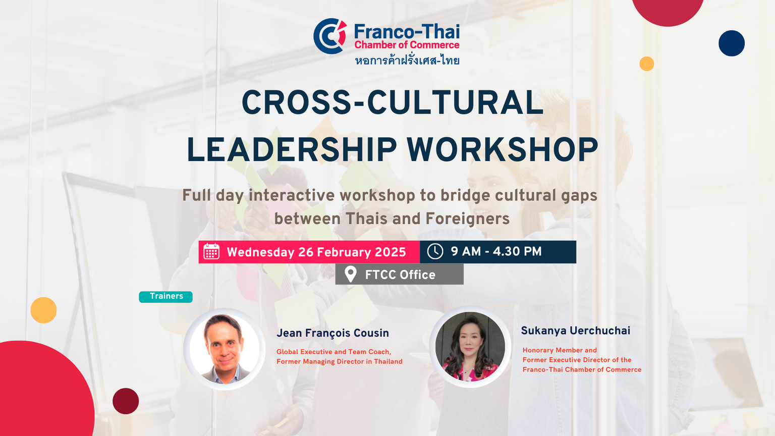 The workshop is designed specifically for Thai and foreign professionals currently working in Thailand, global leaders, and multicultural team members. The pedagogical approach ensures the content is relevant and applicable to the participants' roles and experiences.