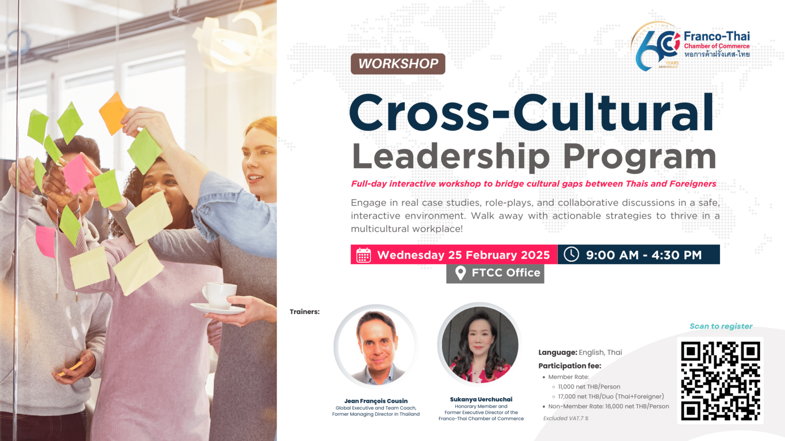The workshop is designed specifically for Thai and foreign professionals currently working in Thailand, global leaders, and multicultural team members. The pedagogical approach ensures the content is relevant and applicable to the participants' roles and experiences.