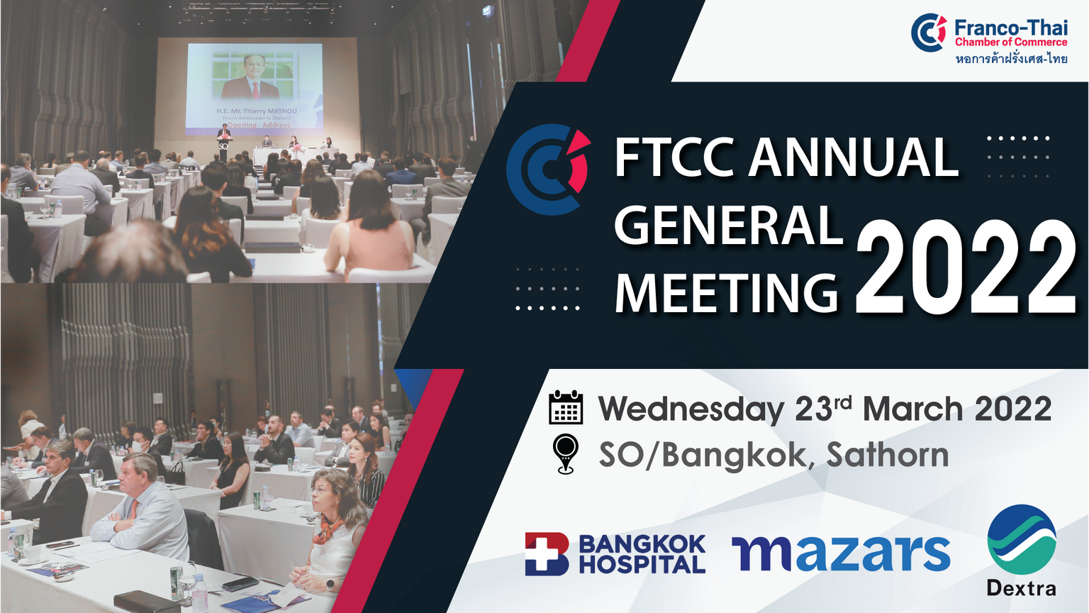 The FTCC AGM will be presided over by His Excellency Thierry MATHOU, French Ambassador to Thailand who will honor us with an opening address at 18h30.