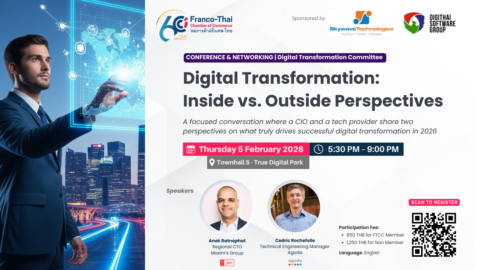 The Franco-Thai Chamber of Commerce (FTCC) is pleased to invite you to join the first conference of the FTCC Digital Transformation Committee.