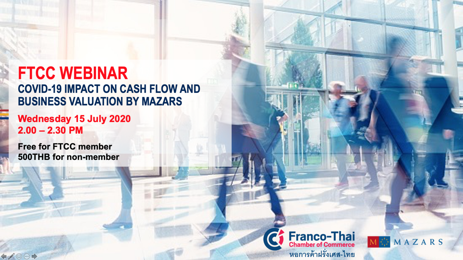 Therefore, Franco-Thai Chamber of Commerce altogether with Mazars are delighted to invite you to a webinar on Impacts on Cash Flow & Business Valuation