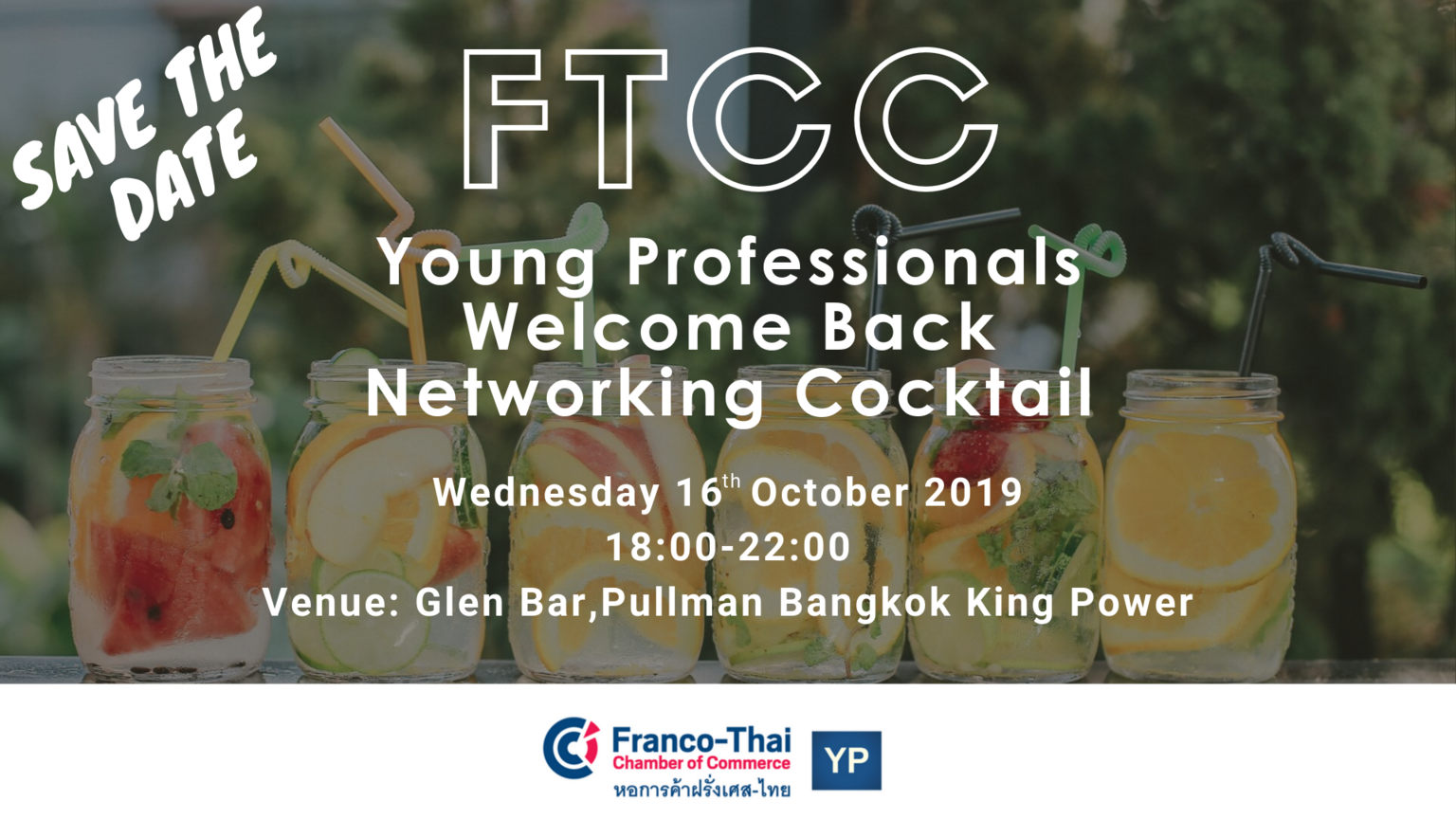 The FTCC Young Professionals is proud to give this year a send-off with ‘Welcome Back YP Networking Cocktail’ on the topic “How to develop successfully a business in Thailand” for all Young Professionals on this upcoming October 16th, 2019 at Glen Bar,Pullman Bangkok King Power.