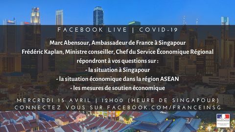 Rendez-vous le mercredi 15 avril à 11h00 (heure de Bangkok) sur la page Facebook de l’Ambassade de France à Singapour