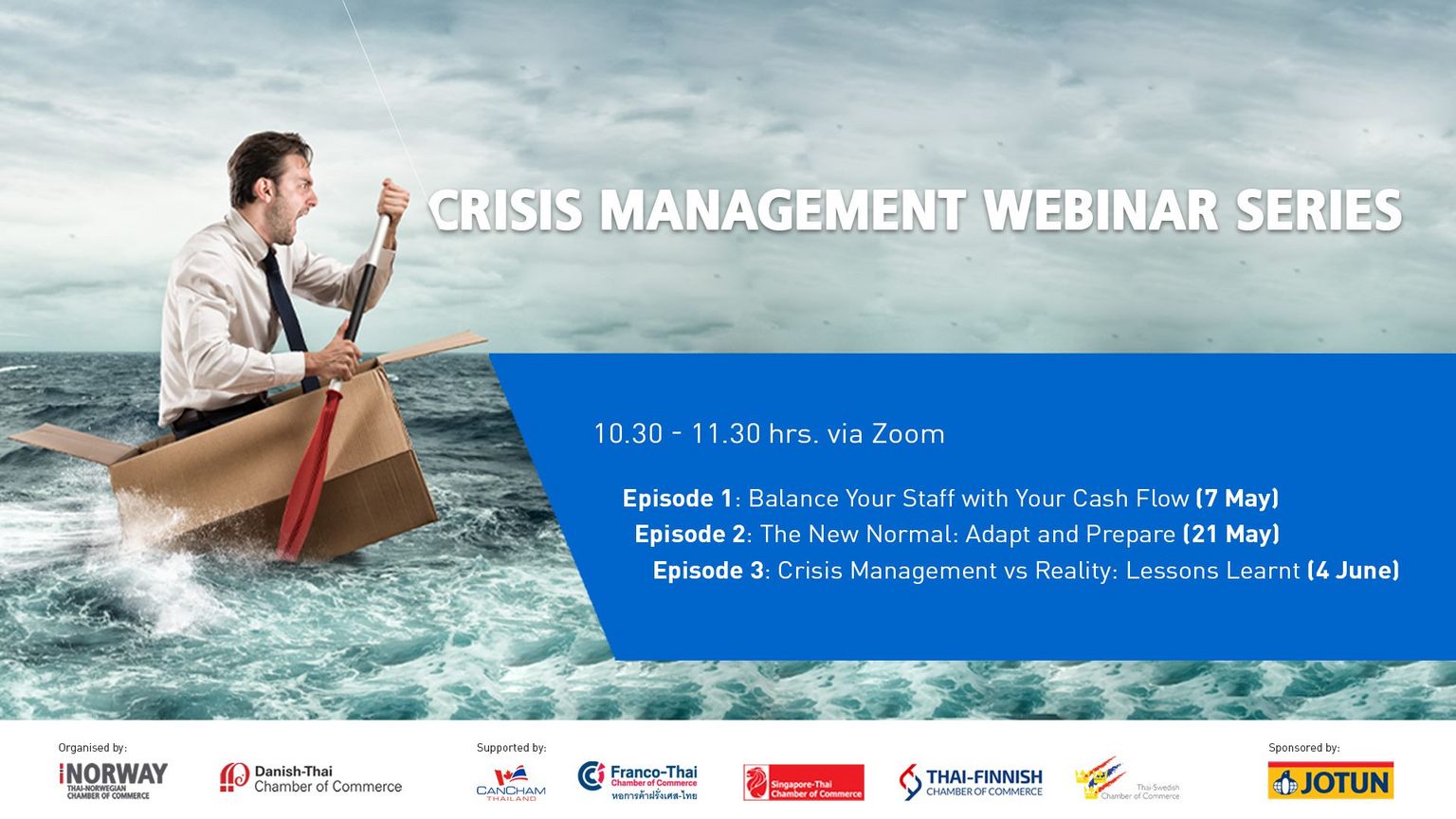 Learn how to handle the current situation with effective crisis management practice by joining the Series of Crisis Management Webinars from May to June on the Zoom platform organised by the Thai-Norwegian Chamber of Commerce and the Danish-Thai Chamber of Commerce.