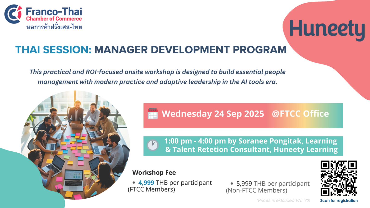 Franco-Thai Chamber of Commerce is pleased to invited you to join Manager Development Program (MDP) in Thai language session in collaboration with Huneety Learning. This practical and ROI-focused onsite workshop is designed to build essential people management with modern practice and adaptive leadership in the AI tools era.