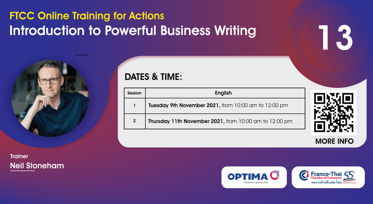Neil is an experienced trainer and consultant who helps companies improve their communications, both internally and externally. Over the years, he has inspired hundreds of professionals to build their writing and speaking skills so they can communicate confidently, persuasively and creatively. Previously, Neil worked as a high school teacher in London, before heading out to Bangkok to teach at a prestigious international school. He also worked as a journalist, writing for the Bangkok Post and Weekly Telegraph, among others.. Email: contact@optima-training.com www.optima-training.com