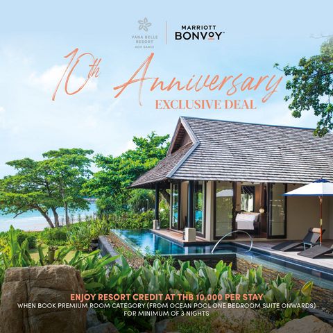 Celebrating our 10th year anniversary of pride and renowned reputation, we are delighted to offer an exclusive deal, get a THB 10,000 resort credit per stay when book Premium room category minimum of 3 nights.