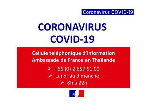 Ambassade de France en Thaïlande: Covid - 19 - La cellule téléphonique d’information de l’ambassade est à votre disposition du lundi au dimanche
