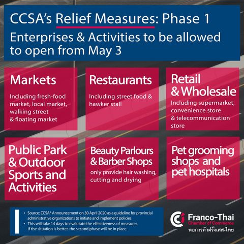 According to CCSA's announcement today, here comes the decision to establish the guideline for the specific group of enterprises and activities which will be allowed to open from May 3 onwards. Please find the summary below for our business community!