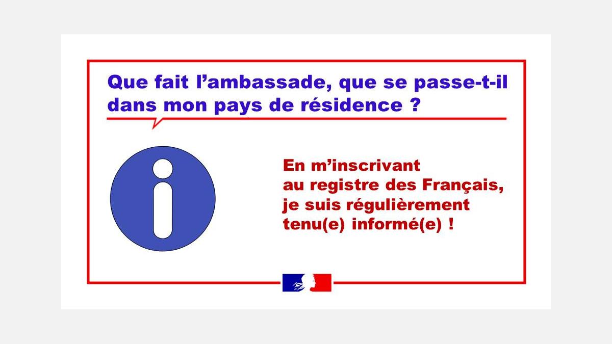 Nous invitons les Français résidents à l’étranger à s’inscrire sur le registre pour recevoir toutes les informations de leur consulat.