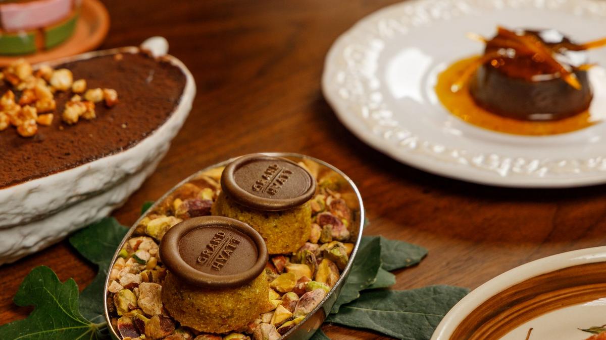 For sweet bites, it includes ‘Torta deliziosa’ (hazelnut praline cake), ‘Baba Napoletano’ (Neapolitan style brioches, limoncello, beries), ‘Gelato al pistachio’ (pistachio ice cream, roasted nuts), ‘Tiramisu’ (mascarpone cream, ladyfingers, coffee and amaretto) as well as other sweet selections.