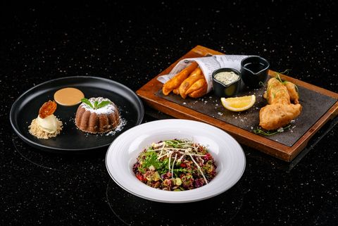 Kick off your meal with signature appetizer, Caesar salad, Onion soup or Superfood salad, followed by your favorite meat from Traditional Fish & Chips, Half Grilled Baby Chicken to Beef Tenderloin. For all sweet lovers, selection of ice cream and sorbets, Valrhona Chocolate Fondant or Mascarpone Cheesecake is highly recommended.