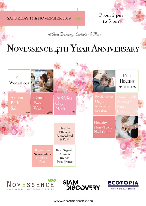 Don't miss Novessence 4th Year Anniversary at Siam Discovery, Ecotopia on this coming Saturday from 2pm to 5pm!